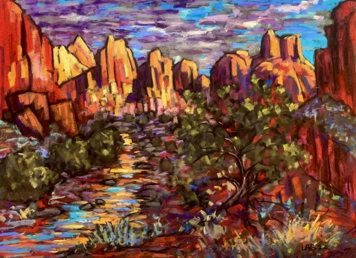Lonny Granston paints where he feels most at home: outside. Inspired by the American Southwest, his work uses bold strokes of color and a complementary palette to capture the world as he experiences it. He works primarily in pastel, with occasional watercolor and oil, creating pieces that feel inviting, personal, and rooted in a love for the the outdoors.